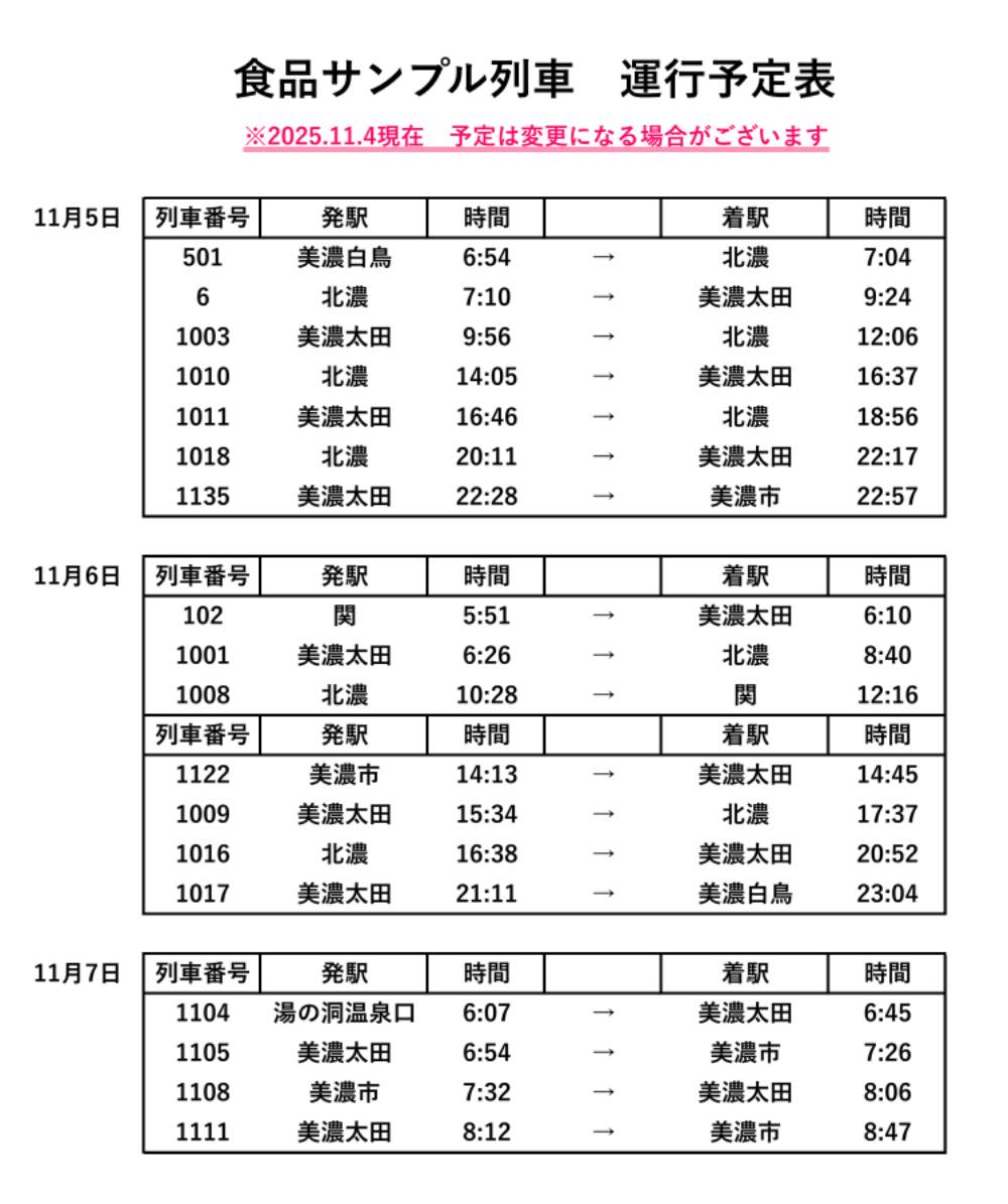 定期運行中のため、運行日と時刻が毎週変更となります。