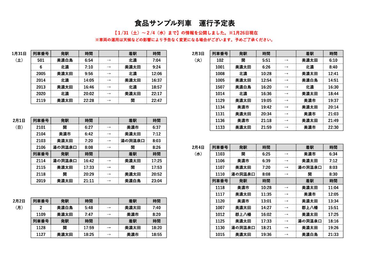 定期運行中のため、運行日と時刻が毎週変更となります。